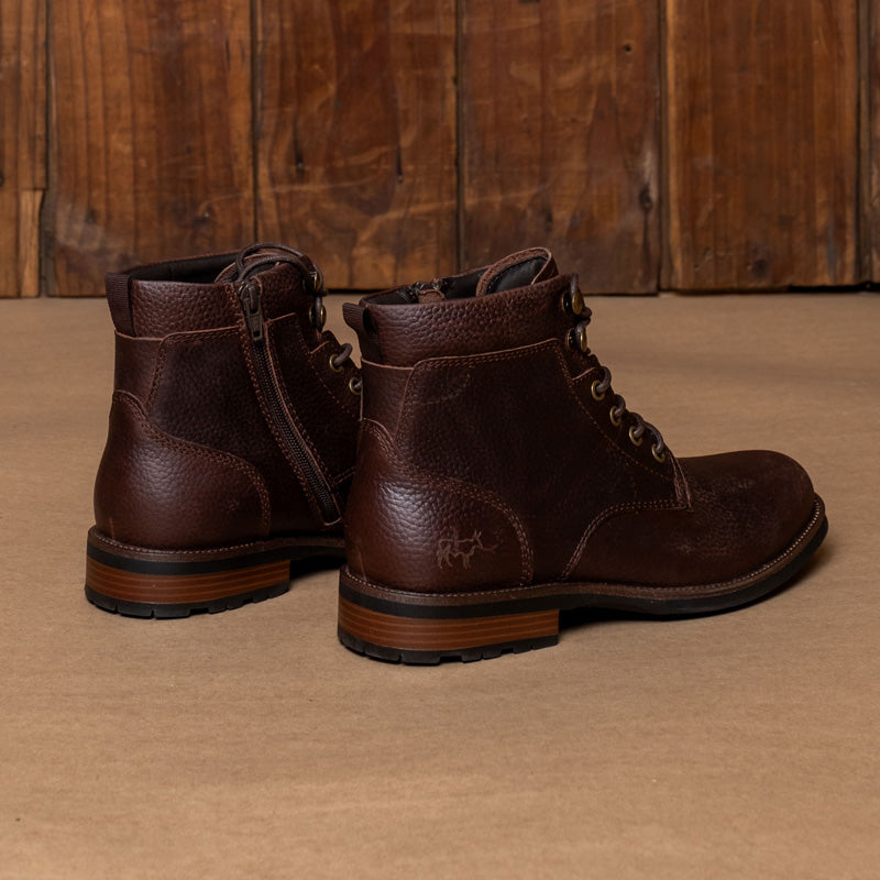Our latest men’s Utility boot is classically styled with functional elements making it the ultimate winter footwear essential. The high cut pattern is used for extra warmth while the upper utilises a full grain, Grade A tumbled leather to give a truly premium feel. For even more added comfort, we have added a YKK zip on the inner of the boot which allows for ease of putting on and off. The outsole is made using tough as nails rubber on the heel-pad and high wear areas to ensure a long lasting tread for grip on damp and icy surfaces.