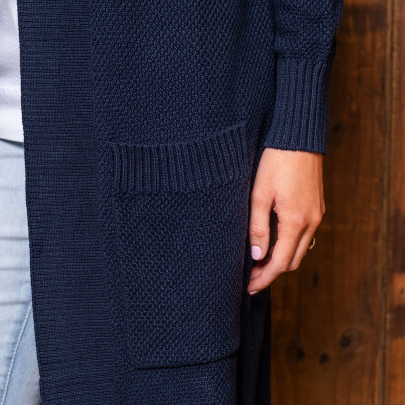 The luxurious Cosy Moss Stitch Maxi Cardi is the epitome African Luxury! This stylish knit is perfectly paired up over your favourite Kingsley tee or tank, and skinny jeans for an effortless Winter look. Our knitwear is crafted from 100% cotton, offering comfort and breathability, as well as ensuring these items retain their shape giving you many years of enjoyment.