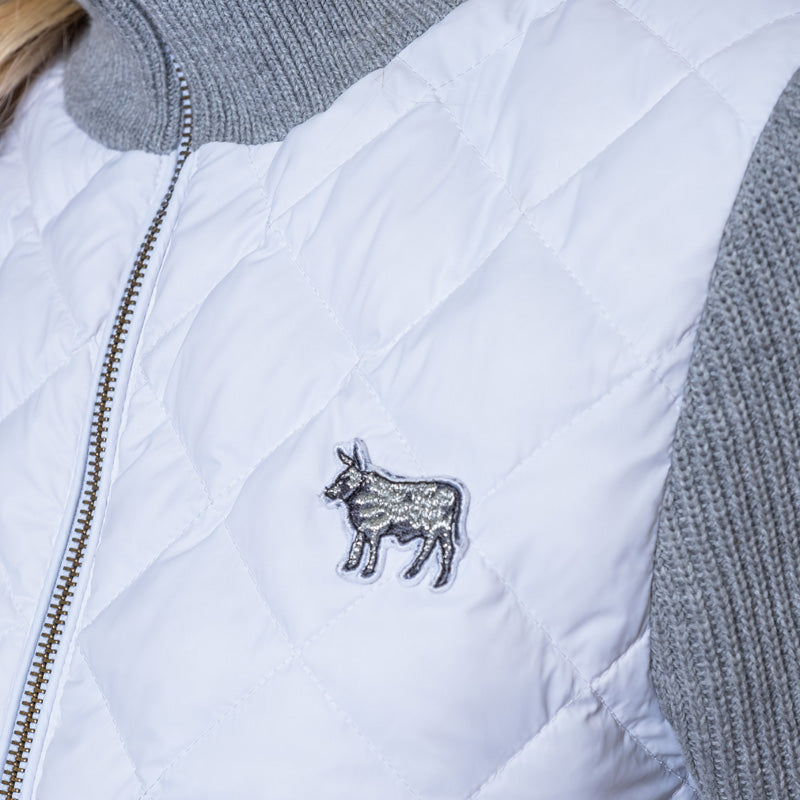 Introducing the Kingsley Heath St Bernard Quilted Zip Up Knit – a versatile and feminine style designed to elevate your autumn wardrobe. Stay cozy and stylish contrasted hybrid. The arms and back are crafted super-soft 100% cotton knit the front is 100% down-filled chevron quilted that provides added warmth, while the knitted rib cuffs and hem ensure comfort and insulation.
