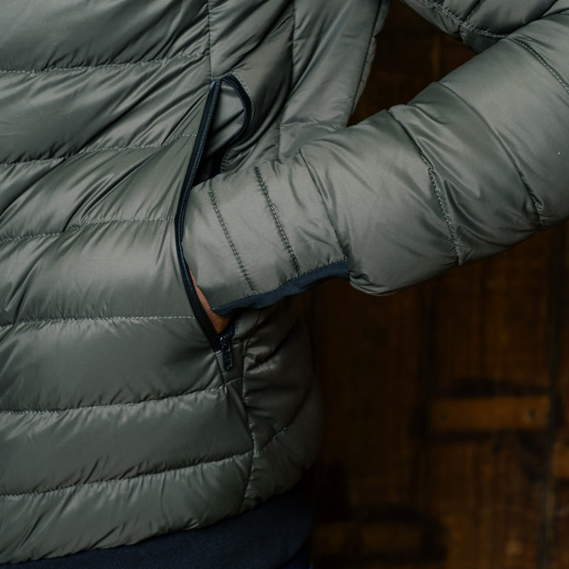 For those extra chilly days, the Flex Knit fabric in the sleeves stands as a barrier against the icy winds, ensuring that not a shiver touches your skin. With an internal draw-cord at the hem and a packable hood, warmth is just a pull away, always ready to cocoon you in coziness. Traveling light? No problem. Our packable design lets you fold the entire jacket into its side pocket, making it a breeze to carry wherever your journey takes you. And rest assured, every detail - from the trouble-free YKK zips to the secure side pockets - is meticulously crafted to enhance your experience.
