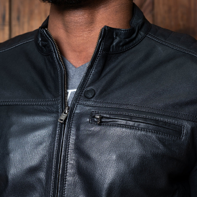 Featuring thoughtful design elements, such as 2 side entry zip pockets, YKK indestructible zippers on cuffs and center, and subtle quilted panels on the shoulders and upper arms, this jacket is as functional as it is stylish. The Kingsley branded snap at the collar and engraved hardware add a touch of sophistication to the design.