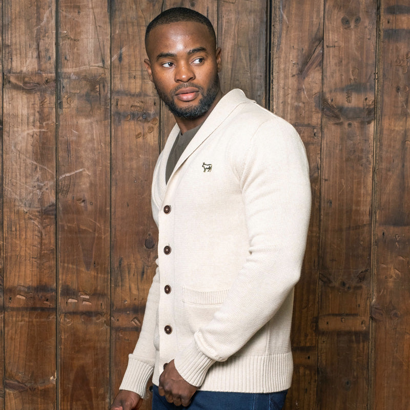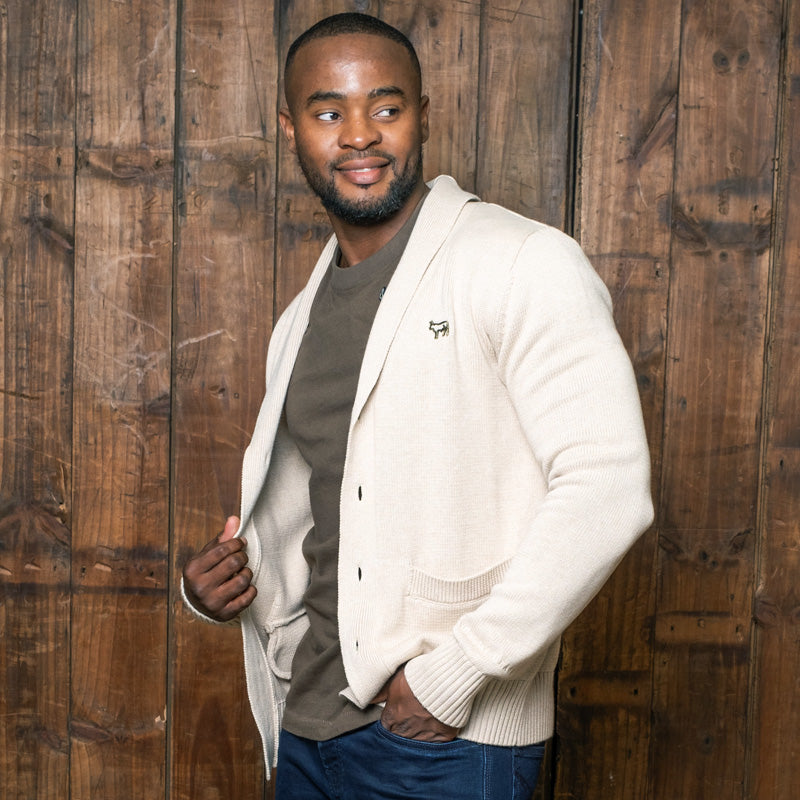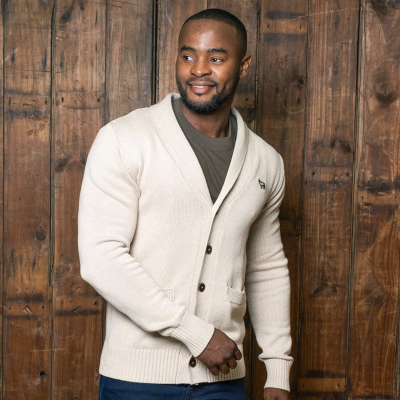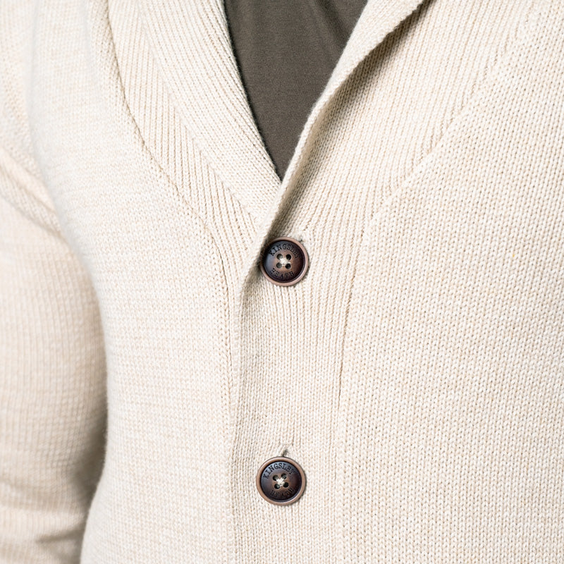 Our Clarens Weekender shawl collar cardigan is made from the finest cotton that is both incredibly soft and warm. This is an iconic garment that you can dress up with your favourite Kingsley shirt and chinos, or dress down with our signature jeans and quality t-shirt. The silhouette is fitted, the waist is drawn-in slightly and the length rests just below the hip line, resulting in a clean and tailored look. These cardigans have a simple elegance that can only be achieved by the kind of craftsmen we worked with in creating this piece. Our 100% cotton knits have the softest handle for a non-scratchy finish and the ability to retain heat without being too warm - whilst also maintaining flexibility and durability for many more seasons. Cotton is a natural product, you can feel good about your choice and the impact on the environment.