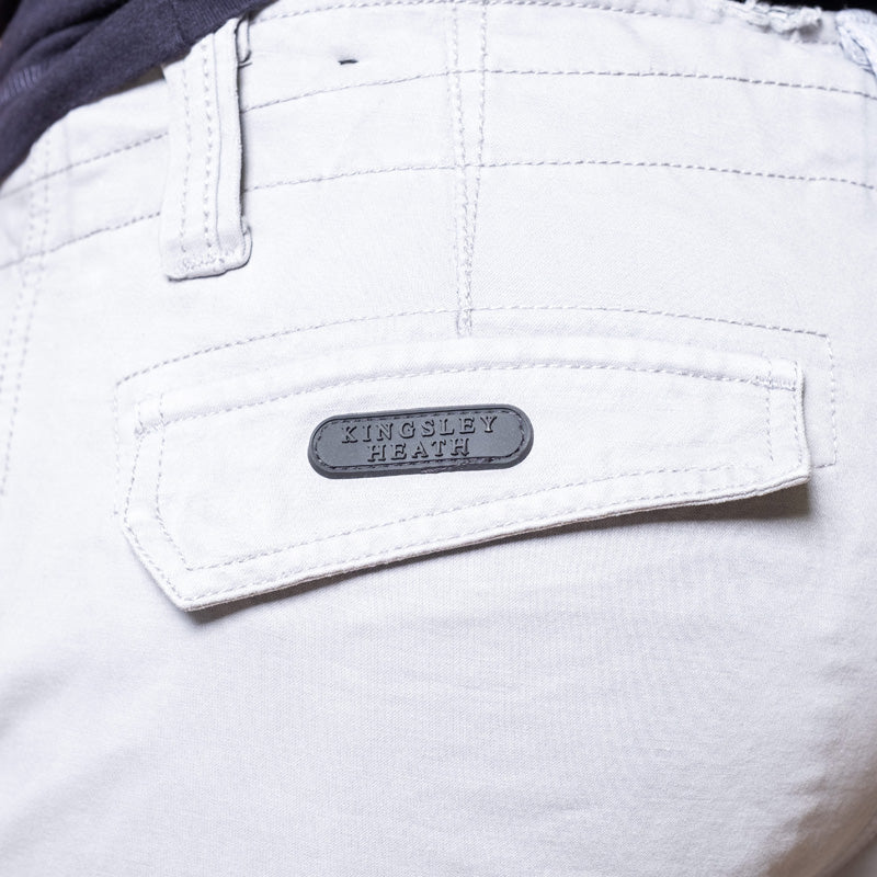 Introducing the vintage Kingsley Heath Daily Trade Cargo short, where impeccable craftsmanship meets extraordinary comfort. Prepare to be amazed by its mind-blowing fabric, meticulously crafted with double-layered weave processes and an exceptionally high thread count in 100% cotton. This combination ensures unparalleled durability and a luxurious hand feel that will leave you in awe. But it's not just about the fabric; the honed fit of this style is designed to be slim and flattering, enhancing your appearance and making you feel absolutely awesome. We believe that when you look good, you feel good. Say goodbye to the frustration of buttons that fall off. Our hassle-free riveted top button is built to last, giving you peace of mind and a secure closure every time. And when it comes to functionality, we've got you covered. With easy-to-open concealed press stud utility side pockets and a convenient zip-up separate side entry pocket on the wearer's left side, you'll have all the storage space you need, right at your fingertips. We never compromise on quality, which is why all our zips are sourced from YKK, renowned for their unmatched reliability. You can trust that these zips will never let you down, ensuring smooth and effortless functionality. But it doesn't stop there. The vintage Daily Trade Cargo short is a masterpiece of design, featuring our signature awesome embroidery branding on the back pocket. The meticulous 5 needle stitch detail on the front pockets and the African-inspired twill detailing on the pocket openings add a touch of artistry and sophistication. And that's not all—we've even introduced a beautiful metal dog tag trim logo onto the front side pocket, elevating the level of luxury a few notches and solidifying the Daily Trade as a true leader in its category. Experience the epitome of style, comfort, and durability with the vintage Daily Trade Cargo short. It's time to embrace a new standard of excellence.