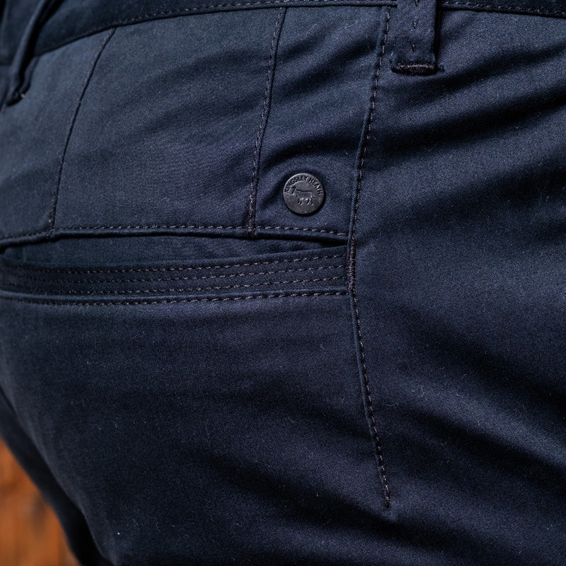But it's not just about comfort; it's about the attention to detail that sets Kingsley Heath apart. Our Londo chinos are packed with thoughtful features, such as branded pocket linings and a vintage wood-look button fly. The small metal branded rivet on the front and an Nguni woven label on the back pocket as well as triple stitch detailing on the pockets that adds a touch of sophistication, elevating these chinos to must-have status in any wardrobe.