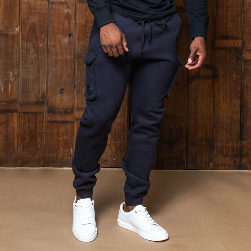 Our 100% cottonCedarberg Cargo Jogger, offers more utilitarian styling with added cargo pockets, a unique felt and rubber badge and self-fabric panelling. Both styles are winter must-haves and are perfectly paired with our unique mens tees, and luxurious fleece sweatshirts.