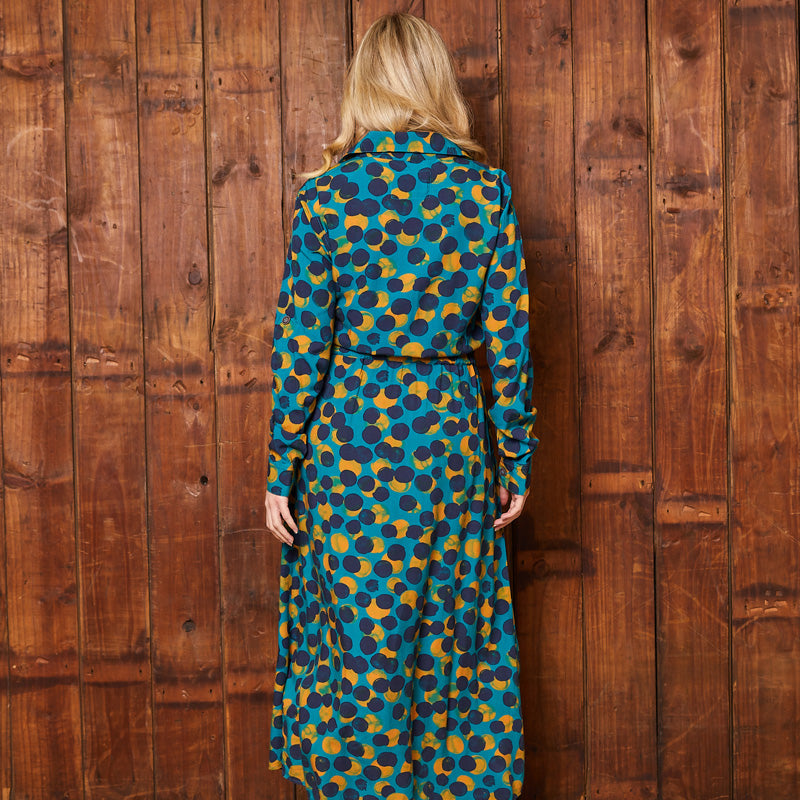 Be bold and beautiful in our vibrant Femme Luxe Polka Shirt Dress, which boasts a fresh hand-rendered polka dot print in this season's punchy colour palette. This flattering statement style is crafted from luxurious viscose rayon, and has the softest handle and beautiful drape. This versatile shirt dress style, with a sleek silhouette, is perfect paired with strappy sandals or heels this season.