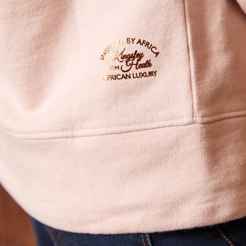 This flattering slim-fit sweatshirt has matching jogger bottoms which can be worn as a leisure-wear set, but can be as perfectly paired up with skinny jeans, and your favourite KH sneakers for a classic winter look. This soft blush pullover sweat boasts subtle satin-stitch embroidered branding, as well as branded metal eyelets with a tonal drawcord. Ensuring we deliver the luxurious quality you have come to love from Kingsley Heath, all our sweatshirts are crafted from heavyweight unbrushed 100% cotton fleece that will keep you warm, as well as give you years of enjoyment - as it will not lose its shape.