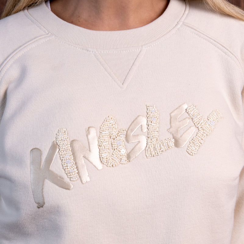 Beaded Kingsley Pullover Sweatshirt Ivory