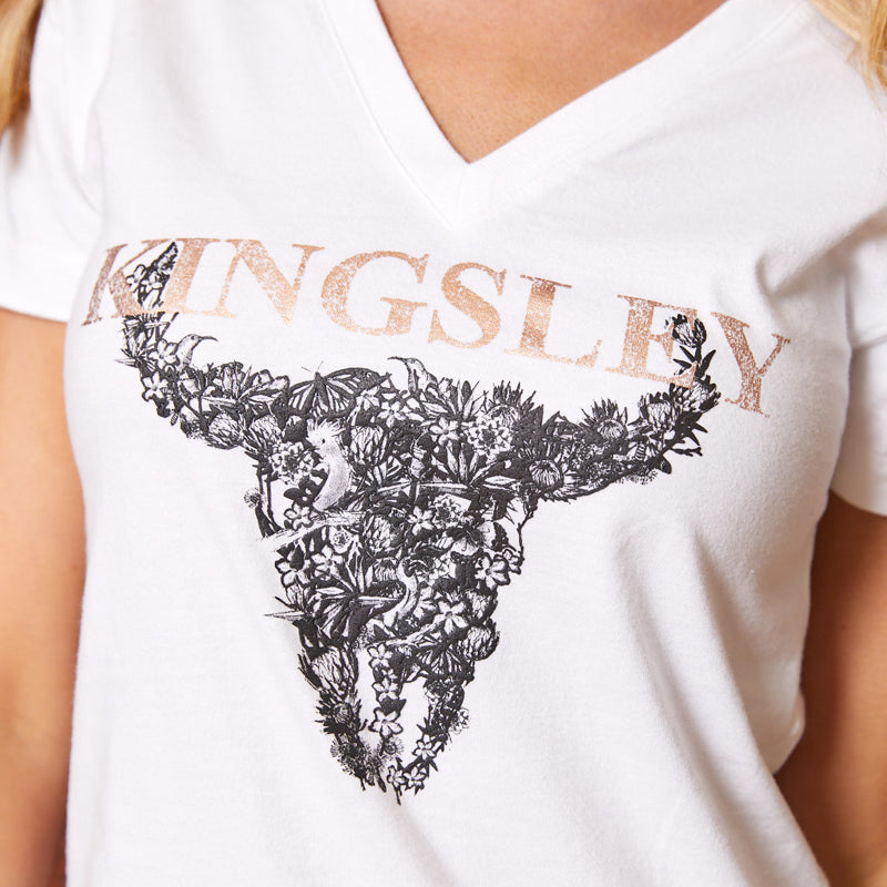 Make this African Nature Skull V-neck tee your next Kingsley tee collection addition! Our unique, hand-rendered graphic is inspired by our magnificent fauna and flora, and boasts high-square print as well as subtle foil print, for added luxurious surface interest. Our tees are crafted from the finest, most luxurious 100% Cotton for long-lasting comfort and durability. Shop these styles in-store and online at kingsleyheath.co.uk