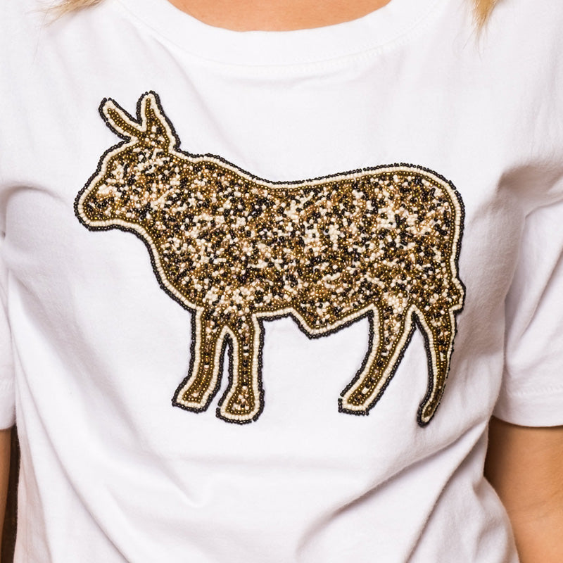 The exquisite hand-embellished Beaded Nguni tee is our latest addition to our ladies tee collection. Clustered monochromatic and metallic seed beads make this iconic tee a Kingsley Heath must-have. Our t-shirt range is unique and crafted from the finest, 100% cotton with luxurious peached hand-feel, for long-lasting comfort and durability. These tees will give you years of enjoyment - as they will not lose their shape.