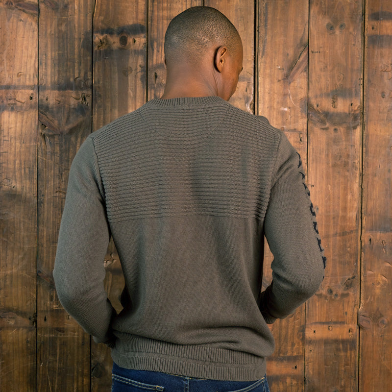 The luxurious Clubhouse Ribbed Pullover is a slim-fit, 100% Cotton knit perfect for layering over our unique tees, or under one of our timeless outerwear pieces. This sophisticated style boasts ribbed detailing, an antique metal Nguni rivet, and contrast branding on the sleeve. Our classic knits are crafted from the finest 100% cotton that is both luxuriously soft and warm. These garments will become your winter staples, as you can wear them casually with our signature jeans and quality t-shirts, or you can dress them up with your favourite Kingsley shirt and chinos.