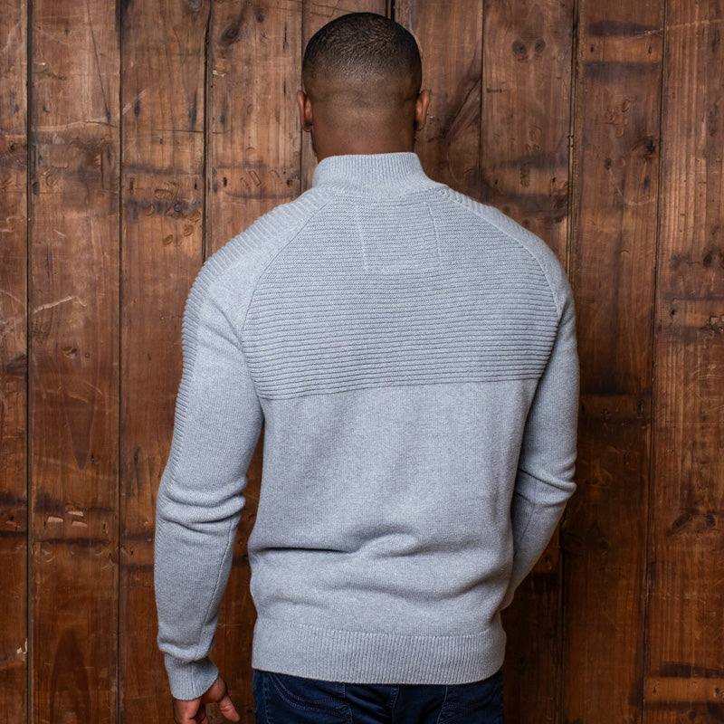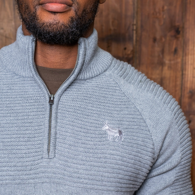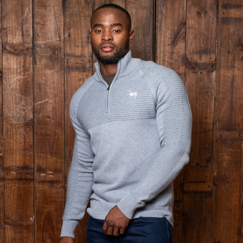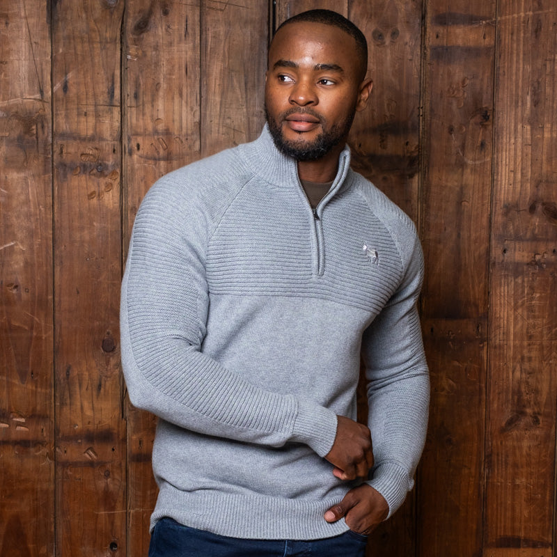 This timeless style boasts a ¼ zip with funnel collar, as well as unique ribbed detailing on the front and back yokes and sleeves. A tonal Nguni embroidery at the chest completes this look.